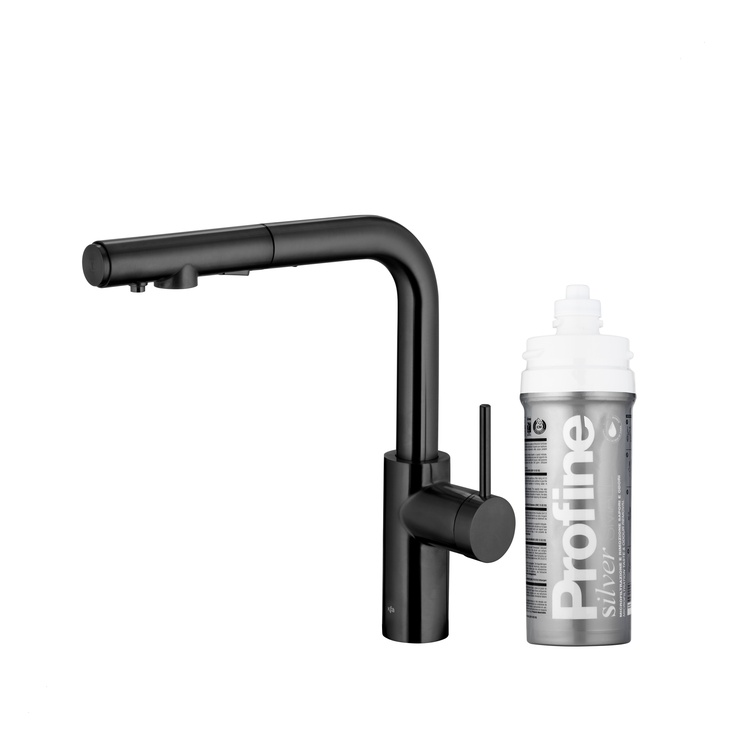 DUERO PURE BASIC bateria kuchenna z funkcją filtracji wody i wyciąganą wylewką, BLACK + zestaw filtrujący PROFINE SILVER "S"