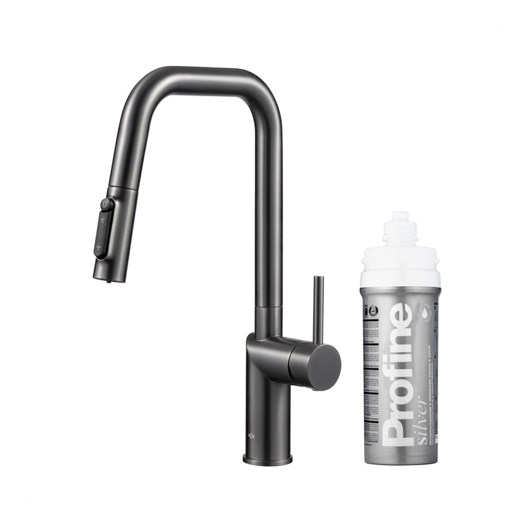DUERO PURE STYLE bateria kuchenna z funkcją filtracji wody i wyciąganą wylewką, GUN METAL GREY + zestaw filtrujący PROFINE SILVER "S"