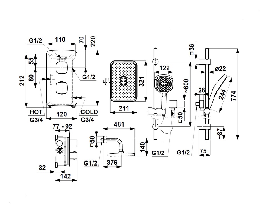 MALAGA BRUSHED LIGHT GOLD zestaw podtynkowy z baterią termostatyczną natryskową i natryskiem przesuwnym