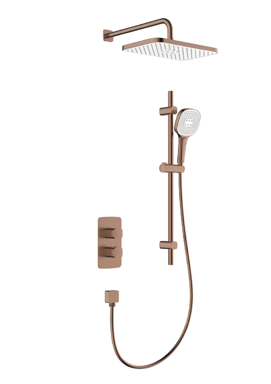 MALAGA BRUSHED ROSE GOLD zestaw podtynkowy z baterią termostatyczną natryskową i natryskiem przesuwnym