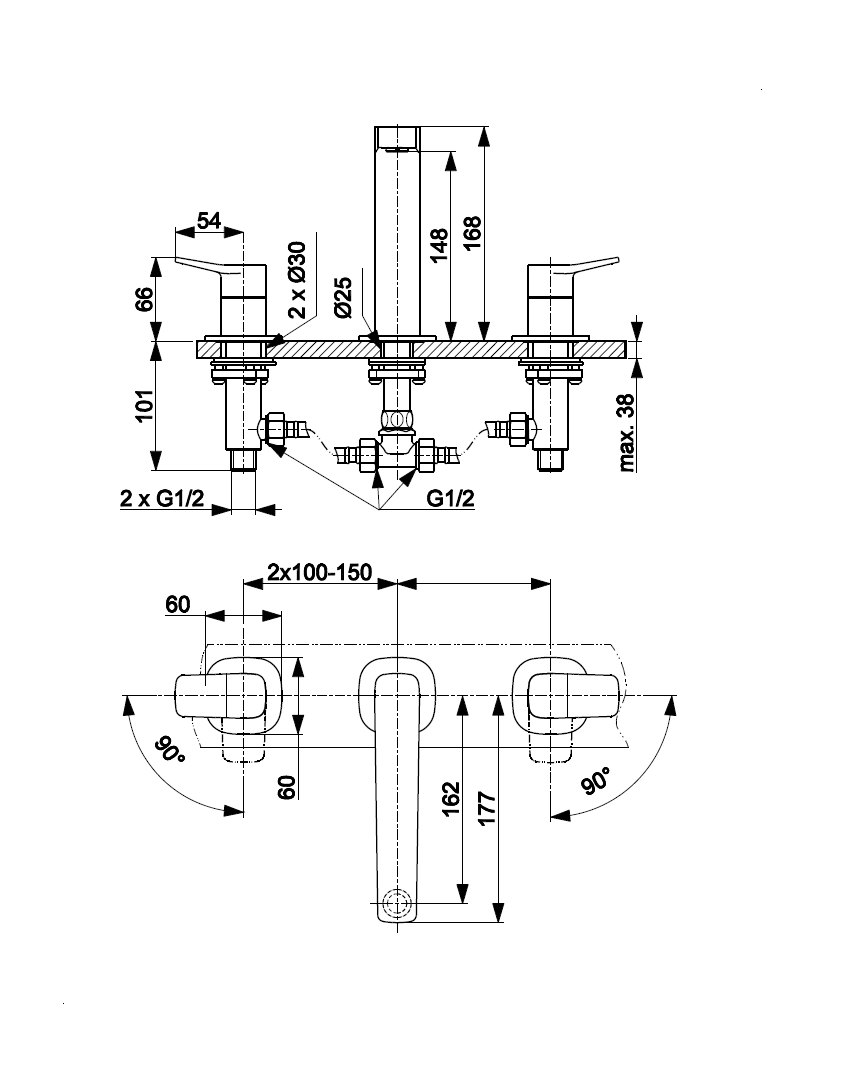 MALAGA WHITE bateria umywalkowa 3-otworowa stojąca