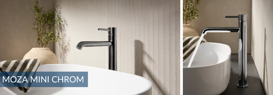 Projekt kolekcji Moza dopracowany jest w najdrobniejszych szczegółach. Każdy element został zaprojektowany z myślą o spójności formy, funkcji i estetyki. Wyraziste, ultranowoczesne rączki natrysków, subtelne wylewki baterii i dopracowane proporcje korpusów tworzą linię o wyjątkowym charakterze — nowoczesną, ale zarazem harmonijną i ponadczasową. Baterie w kolorze chromu wnoszą do wnętrza blask, klarowność i elegancję. Lustrzane wykończenie odbija światło, podkreślając precyzję detali i czystość formy. Chrom doskonale współgra z każdym wystrojem — od klasycznych aranżacji po ultranowoczesne wnętrza, nadając im wrażenie świeżości i perfekcyjnego wykończenia. Kolekcja Moza obejmuje pełen wybór armatury łazienkowej — od baterii umywalkowych i wannowych po deszczownie i zestawy natryskowe. To design, w którym codzienność spotyka się z perfekcją detalów.