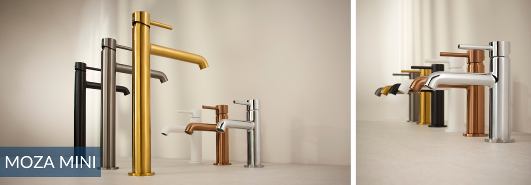 Kolekcja Moza została zaprojektowana z myślą o doskonałej harmonii pomiędzy formą, funkcją i estetyką. Minimalistyczne wylewki i dopracowane proporcje korpusów tworzą ultranowoczesną linię, w której każdy detal ma znaczenie. W wersji gun metal grey armatura zyskuje niezwykle elegancki, subtelny ton. Ciepła barwa różowego złota w szczotkowanym wykończeniu dodaje wnętrzu miękkości i blasku, tworząc wysublimowaną atmosferę. To propozycja idealna do współczesnych łazienek, w których liczy się nie tylko funkcja, ale i nastrojowy design. Moza w tym wykończeniu to sposób na wnętrze o wyjątkowej osobowości i przyjemnej, luksusowej aurze.
