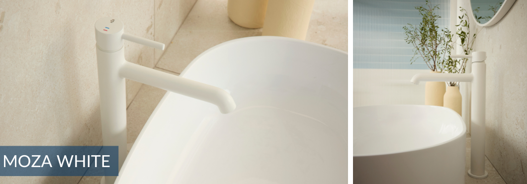 Projekt kolekcji Moza dopracowany jest w najdrobniejszych szczegółach. Każdy element został zaprojektowany z myślą o spójności formy, funkcji i estetyki. Wyraziste, ultranowoczesne rączki natrysków w deszczowniach premium, subtelne wylewki baterii umywalkowych i dopracowane proporcje korpusów tworzą linię o wyjątkowym charakterze — nowoczesną, ale zarazem harmonijną i ponadczasową.