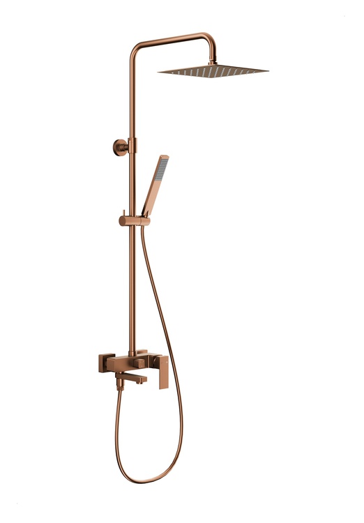 LOGON BRUSHED ROSE GOLD deszczownia z baterią natryskową i składaną wylewką wannową