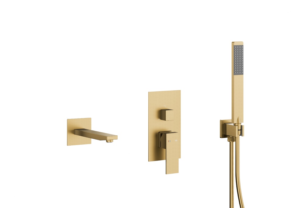 LOGON BRUSHED LIGHT GOLD podtynkowy zestaw wannowy z baterią 3 funkcyjną