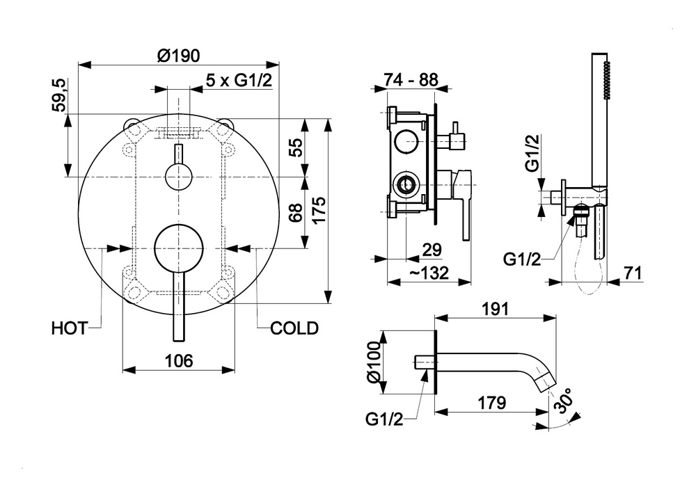 MOZA BRUSHED ROSE GOLD podtynkowy zestaw wannowy z baterią 3 funkcyjną