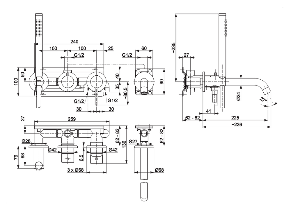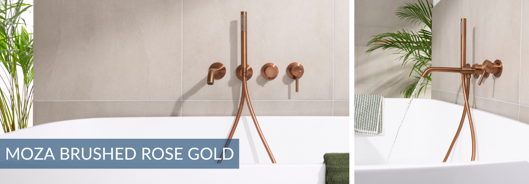 MOZA BRUSHED ROSE GOLD zestaw wannowy podtynkowy z baterią 3-otworową 2-funkcyjną