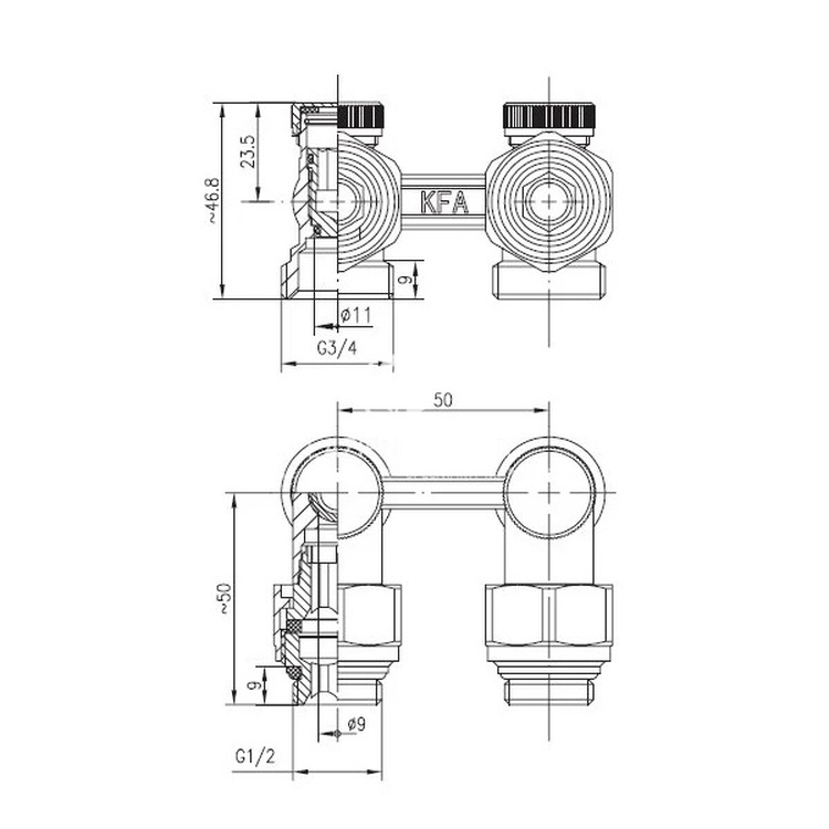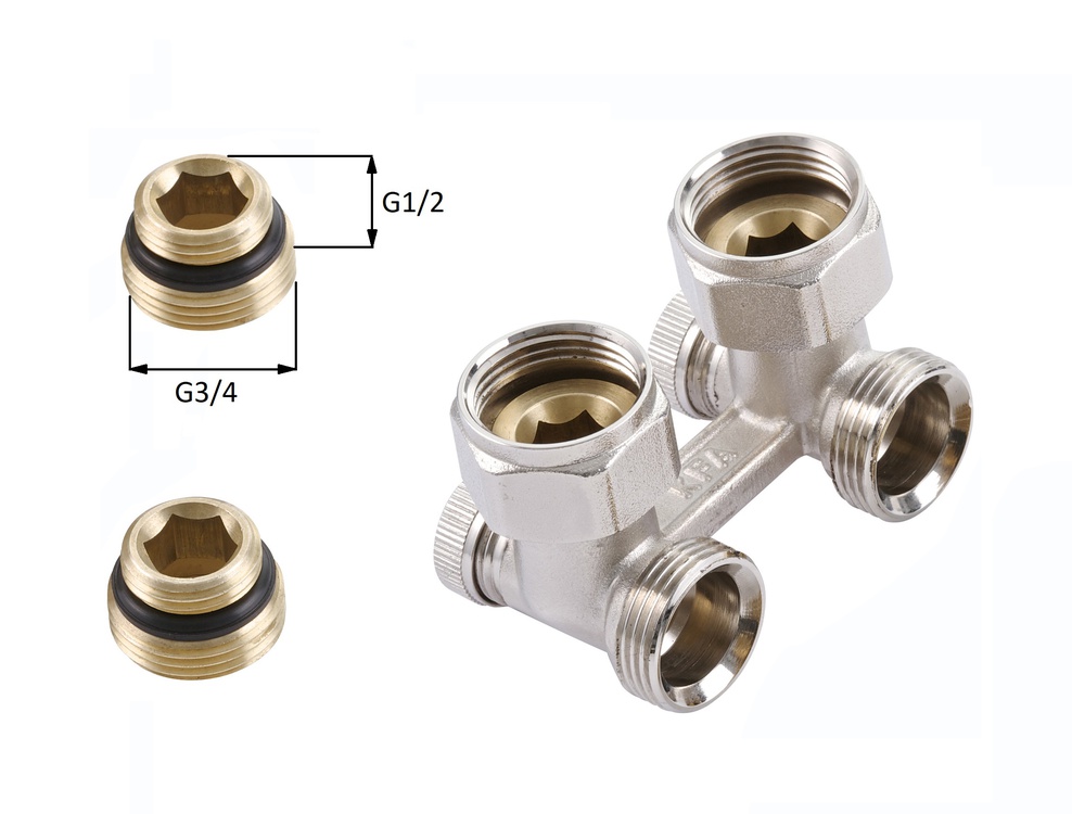 Zespół przyłączeniowy kątowy do grzejników z dolnym zasilaniem 3/4x1/2