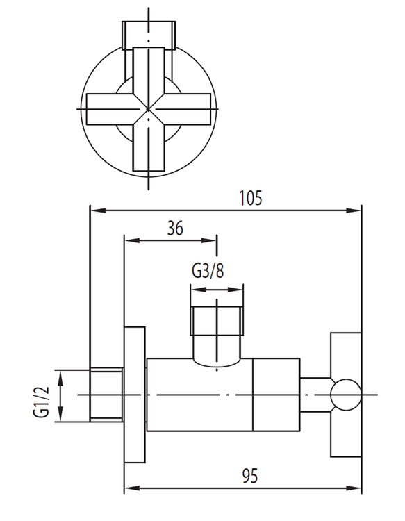 Zawór wodny kątowy, przepływowy do baterii stojących, uchwyt typu „symetric” 1/2x3/8